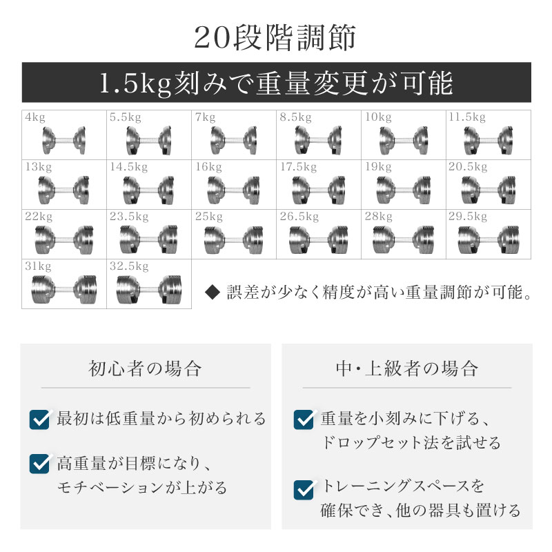 4kg-5.5kg-7kg-8.5kg-10kg-11.5kg-13kg-14.5kg-16kg-17.5kg-19kg-20.5kg-22kg-23.5kg-25kg-26.5kg-28kg-29.5kg-31kg-32.5kg(20段階) |