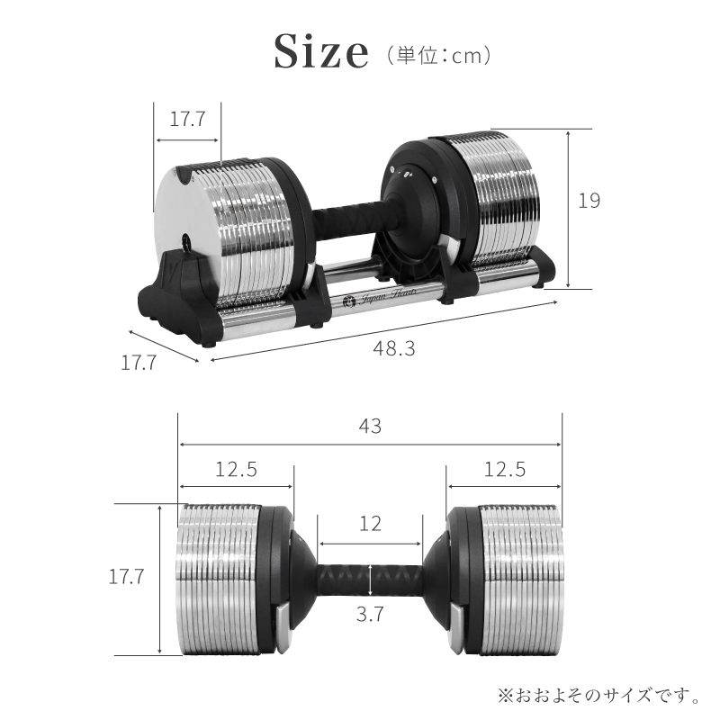 W48.3cm × D17.7cm × H19cm(ダンベル+トレイ) |